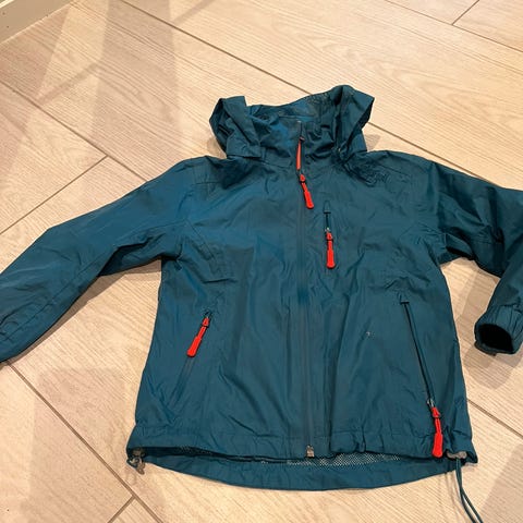 Skallbukse og jakke fra Helly Hansen i blå str 128. Pent brukt, men se nærmere på ene bildet der ser man at det er litt brukt. Fra dyre og røykfritt hjem.