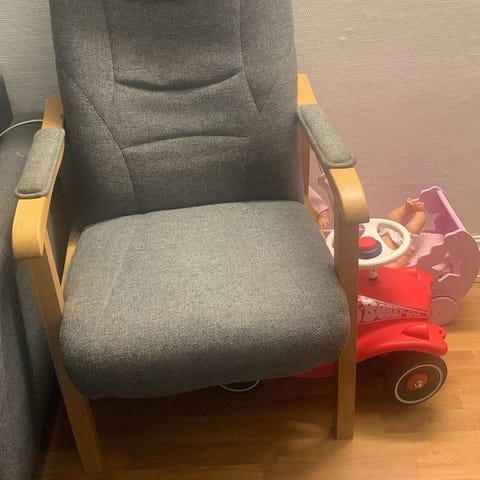 Lenestol fra IKEA selges. Noen flekker på stoffet, ellers ok