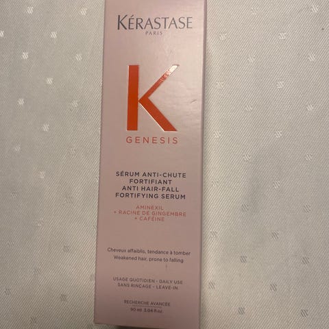 Kérastase Genesis hårpleiesett bestående av tre produkter: en sjampo, en balsam og en hårkur. Produktene kommer i en gaveeske med dekorativt design. Passer for pleie og styrking av hår.
