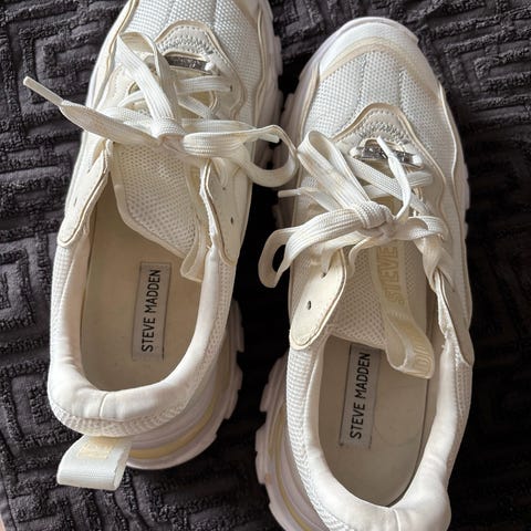 Pent brukte sko fra Steve Madden. Str 36. Sorte sko med hvit såle