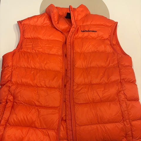 Peak Performance Denali V vest i størrelse L, farge svart. Yttermateriale og fôr er laget av 100% polyamid, med 90% andedun og 10% andefjær som fyll. Vesten har glidelås, lommer med glidelås og er designet for utendørs bruk. Vaskes separat ved 40 grader, kan ikke blekes eller tørketromles.