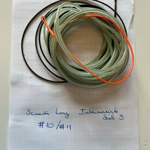 Selger et Rio Scandi VersiTip #10, et komplett og fleksibelt klumpsystem til tohåndsstang. Dette settet er ideelt for laksefiske, med flyteklump og utskiftbare spisser slik at du kan tilpasse fisket etter forholdene.