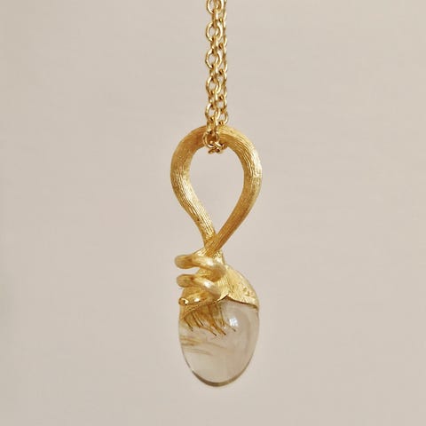 Smykke fra danske Pilgrim. Gullfarget kjede med avlang blankt anheng.