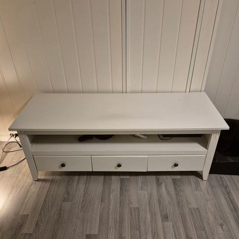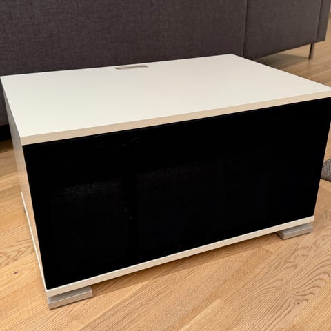 Et fint Tv-bord av glass, selges. Metallet og glassplater trenger litt vask/oppfriskning. Tv kan også selges for et tillegg i prisen. Må hentes.