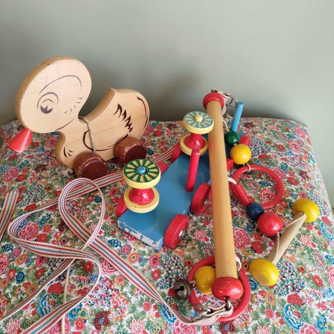 Diverse retro barneleker og stoler