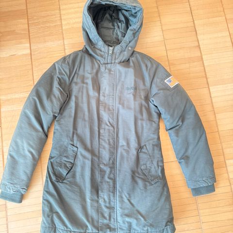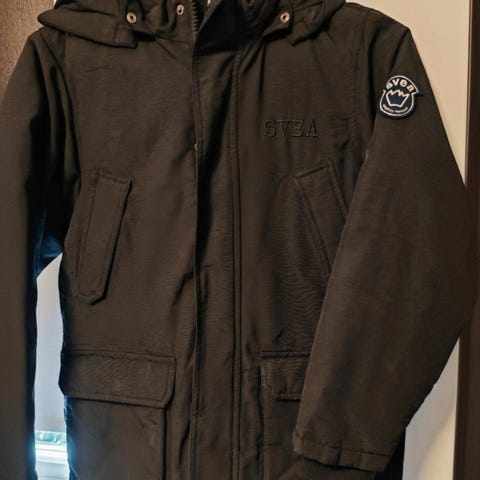 Jakken har noen små flekker på ermet, som vist på bilde.