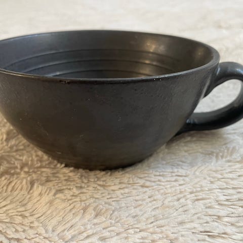 Rommer ca 9+- dl . Uten slitasje. Til den som elsker å sitte lenge med en tekopp. Kan hentes sentralt i Oslo etter avtale. Kan sendes til 69 kr med post Nord utenom fiks ferdig. Det er større mål.Har flere annonser.