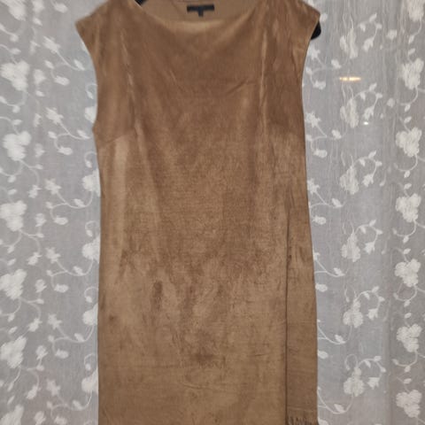 Kjole frå merket Donna, str 36. Stoffet er ein imitasjon på semska skinn, den har ein underkjole inni og fell fint på. Fin både med og uten belte.