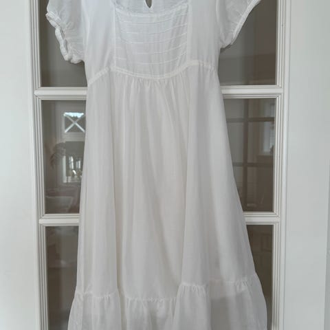 Hvit kjole med korte ermer. Str 152.