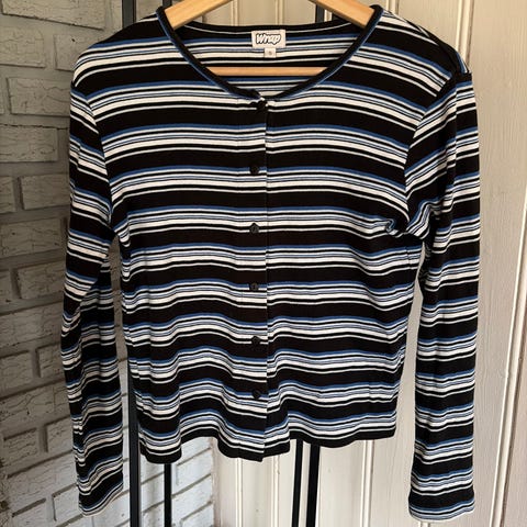 Korterma cardigan fra MSCH med striper. Toppen er ny og ubrukt, men lappen er fjerna. Str S.