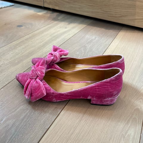 Ubrukte pensko fra Custommade str 37. Rosa velur og stor sløyfe. Selgast pga dei er litt små til meg ( Eg har ca 37,5 i str).