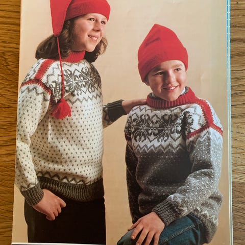 Flere oppskrifter fra 70-/80-tallet i garnet Fritidsgarn. Stort sett pinne nr. 5, 5,5 og 6.