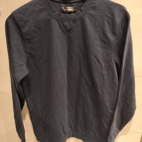 Dressmann Pima Cotton genser i størrelse M, svart med grå stripemønster. Genseren er laget av Pima bomull, som gir et mykt og slitesterkt materiale. Passer til herrebruk.