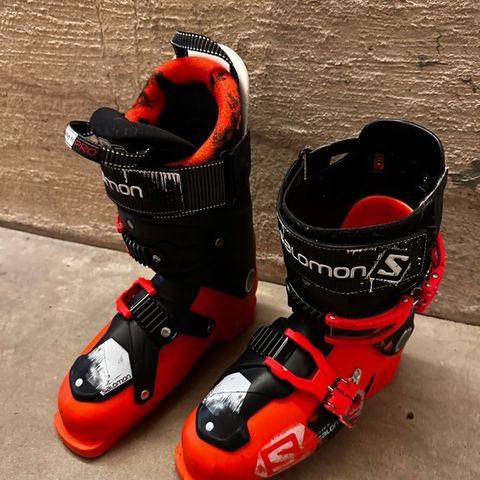 Salomon ski med monterte bindinger og tilhørende støvler.