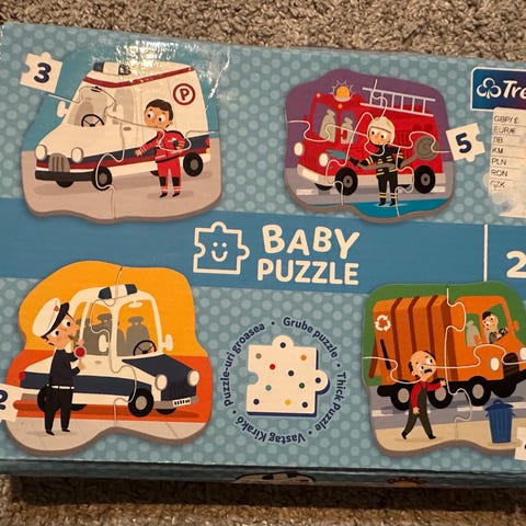 Trefl Baby Puzzle Dyr Puslespill består av fire puslespill med bondegårdsdyr i fargerike motiver. Hver puslespill har 3-6 brikker og er laget for små barn. Puslespillene er laget i solid materiale med trykk av ku, hest, gris, høne og andre dyr. Passer for barn i tidlig utviklingsfase for å øve på motorikk og gjenkjennelse av dyr.