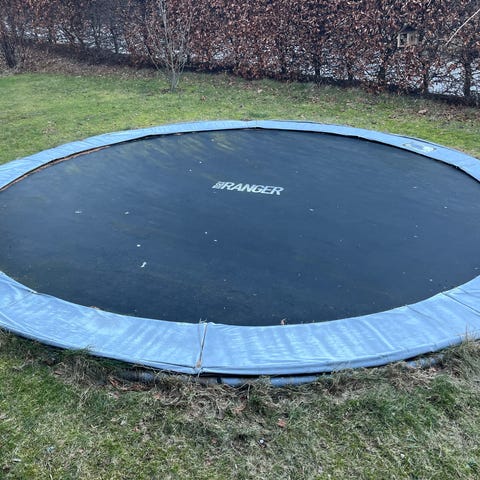 Trampolinen fungerer helt fint og har netting. Gis bort da vi ska kjøpe større.