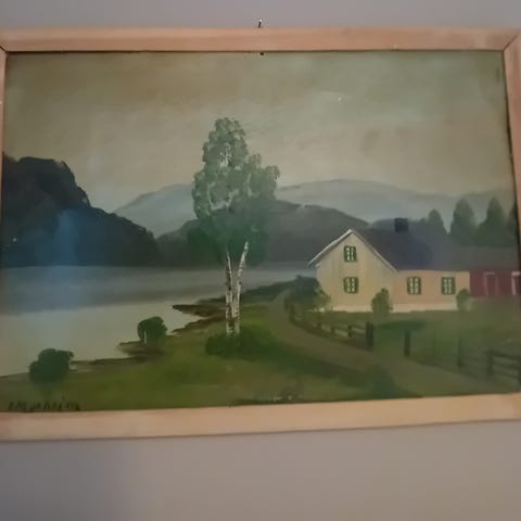 46 x 38 cm oljemaleri med ramme, signert L. Themte.