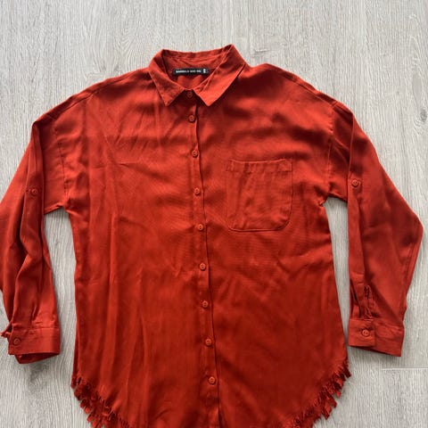 Burgunder bluse fra Massimo Dutti str 42, liten på størrelsen og passer fint om du bruker str 40. Kvalitet: 100 % bomull. Blusen er lite brukt og fremstår som pen.