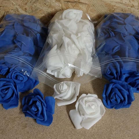 Bukett med forskjellige kunstige stilker inkl røde roser