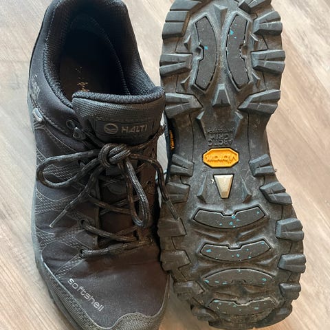 Halti Vertex MD GTX fottursko i størrelse 42. Skoene er grå med gule detaljer og har Gore-Tex membran for vanntetthet. Egnet for fotturer og utendørs bruk.
