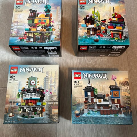 - 40704 Micro NINJAGO Docks: En mikromodell av NINJAGO City Docks, med marked, leiligheter, tearoom og arkade.