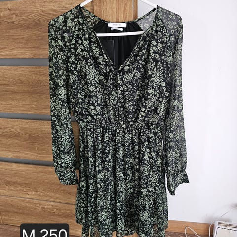ADOORE Andre kjoler i marineblå farge, størrelse One size. Kjolen har et mønster med små prikker, langermet design og veldig fin passform. Litt puff ermer. Behagelig og elegant stoff. Må hentes i Bergen eller sender per post dersom kjøper dekker frakt