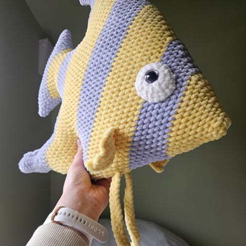 Kjempe myk og søt pute/leke til barn som uten tvil blir til barnas favoritt. Kan brukes både som pynt til barnasrom eller som pute. Er strikket med myk garn og er behagelig mot huden. Perfekt til en gave. Er hjemme strikket og er klar til å finne sitt nye bestevenn🥰