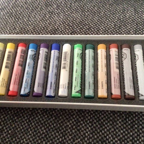Caran d'Ache Neopastel olje pastellkritt, sett med 34 stkPastellkrittene er i ulike nyanser og brukt, egnet for kunstnerisk bruk og tegning. Materialet gir mulighet for blanding og lagdeling av farger.Har ligget sammen i boks m div pastellkritt, derfor smuss utenpå. Lite brukt. Selges samlet 440 Koster vanlig 37 pr stk ., ca 1250 tils.