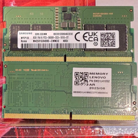 Crucial RAM 16GB (2*8GB)DDR5 SODIMM-moduler designet for bruk i bærbare datamaskiner og små formfaktor-PCer. Moduler med høy ytelse og lavt strømforbruk, kompatible med systemer som støtter DDR5-minne. Selger RAM fra 2 år gammel lite brukt laptop som aldri har vært overklokket grunnet oppgradering til 32GB.