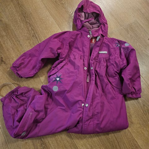 Reima Play Layers barne vinterdress i størrelse 98, med grønn jakke og svart bukse. Dressen har avtagbar hette, refleksdetaljer, og er laget for å gi varme og beskyttelse mot værforhold. Materialet er slitesterkt og egnet for aktiv lek utendørs. Fra et røyk og dyrefritt hjem.