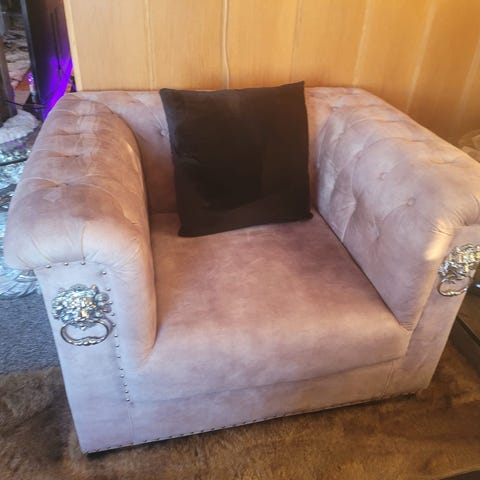 En stol har merke bak pute som ikke vises hvis pute med. Se bilde