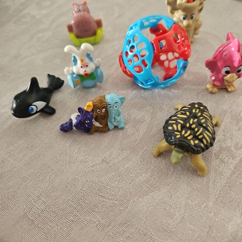 Fisher-Price Little People lekesett med ulike figurer i forskjellige farger og former. Settet inkluderer dyr, mennesker og andre karakterer, laget i plastmateriale. Passer for barn og kan brukes til rollelek og utvikling av fantasi.