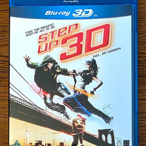 Step Up 3D Blu-ray film. Inneholder dansescener i 3D-format. Passer for seere som er interessert i dansefilmer og underholdning.