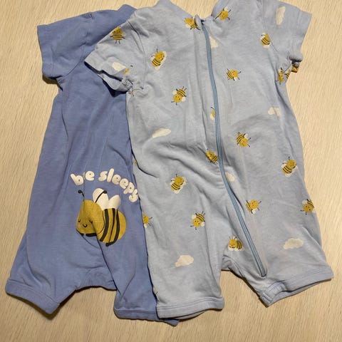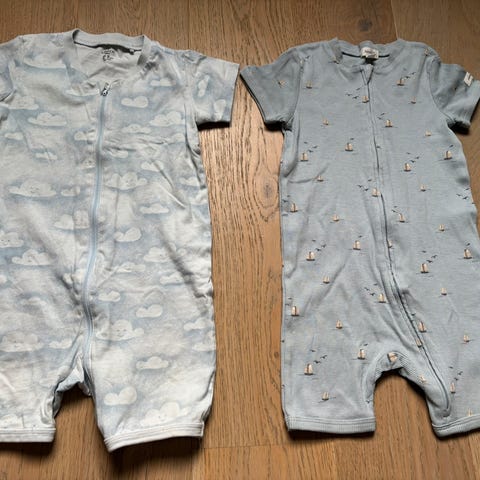 Liten pakke med to kortermet pysj fra KappAhl i str. 86. Pysjene har glidelås foran og søtt dyreprint.