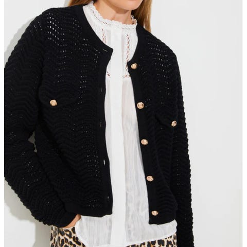Nydelig cardigan fra Suncoo. Helt ny med lapp. Bouclet cardigan - jakke i grønn og hvit med gullknapper. Preppy og fin.