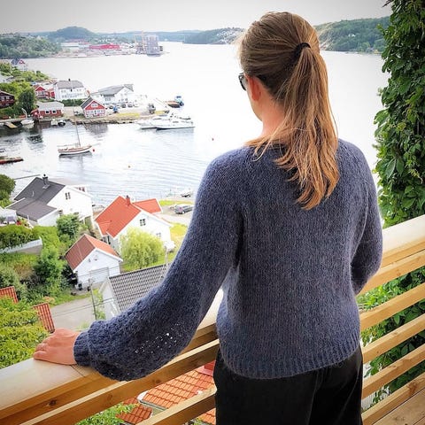 Strikket i Sandnes tynn silk mohair i farge 6023 og 6042.