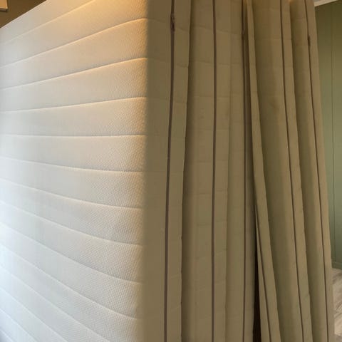 VYSSA madrass i hvitt stoff, som kan tas av og vaskes. Passer til barneseng/reiseseng 60cmx120cm. Madrassen har en enkel design og er laget av materialer som gir støtte og komfort for barn.