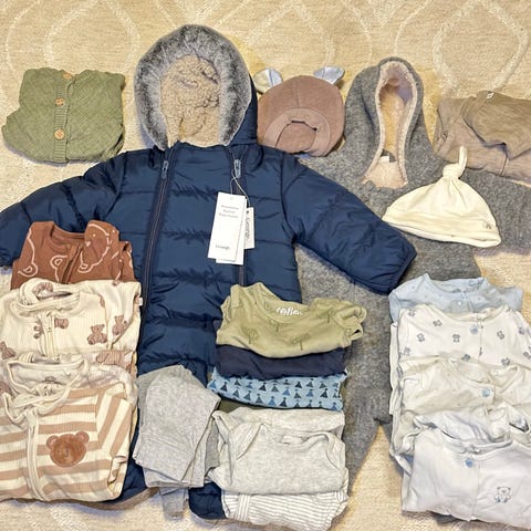 Størrelse 80 og 86, men den kan brukes til mindre barn eller litt større. Selges samlet for 100 kr