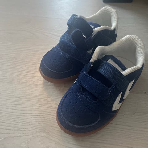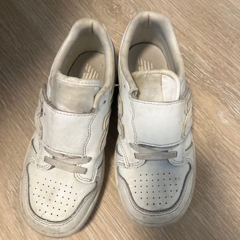 New Balance barn sko i størrelse 32, designet for gutter. Skoene har en kombinasjon av blå og hvit farge, med borrelås for enkel på- og avkledning. Materialet består av syntetiske tekstiler og gummi såle, egnet for daglig bruk.