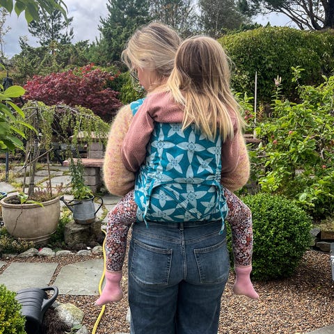 Pent brukt Fidella onbuhimo bæresele toddler size. Brukes til ryggbæring av større barn. Brukt fra 18mnd til 5 år for av-og-på-bæring hos oss. Det er lett å ta selen av og på, da det kun er én stropp over brystet som må lukkes.