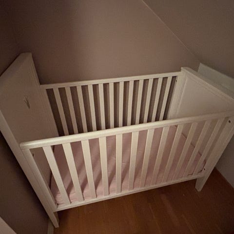 Selger Troll Royal Sprinkelseng. Nesten ikke brukt. Sprinkelseng i klassisk hvit med en håndmalt grå krone på hodegavlen. Sengens base kan justeres i tre forskjellige posisjoner i høyden.
