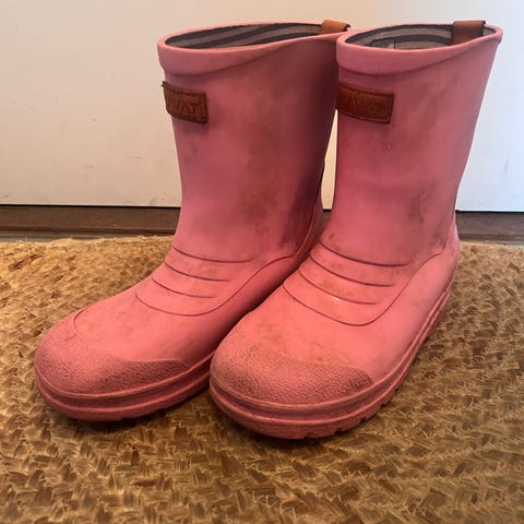 Kavat barnestøvler for jente i størrelse 30. Støvlene er laget i rosa gummi med et slitesterkt yttersålemønster for godt grep. Designet for å beskytte føttene mot vått og gjørmete vær. Meget pent brukt.