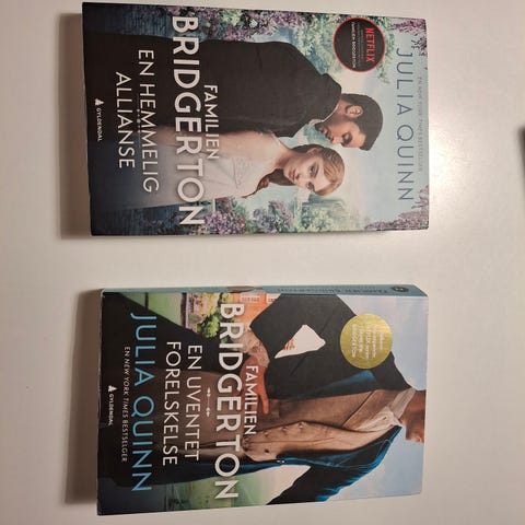 Familien Bridgerton bøker nr 4-8 selges samles eller hver for seg. Meget pent brukt. Kan sendes med fiks ferdig eller hentes på Lilleaker eller i Bjørvika ( dagtid)