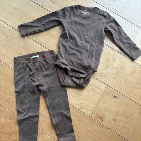 Ullsett fra Name It i 100% merinoull🤍 Str. 62. Kun brukt et par ganger og fremstår som nytt. Mykt og behagelig. Perfekt til høsten og vinteren.