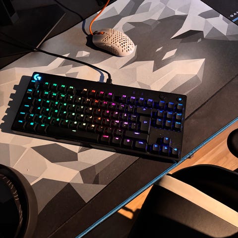 Logitech G105 tastatur med USB-tilkobling i svart farge. Tastaturet har standard QWERTY-layout og er designet for bruk med PC. Det er et kablet tastatur med ekstra funksjonstaster og indikatorlys for Num Lock, Caps Lock og Scroll Lock.