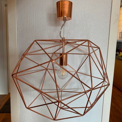 Veldig pent brukt. Nypris lampe og 5 stk pærer er 546 kr. Ovalt speil fra Rusta