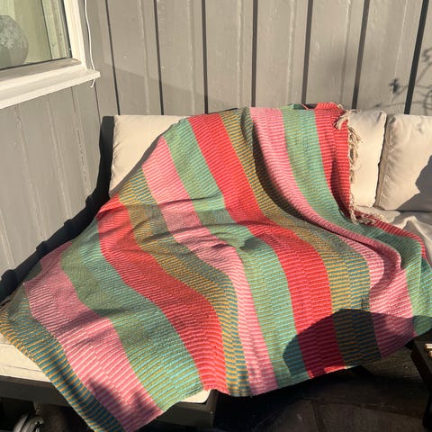 RETRO sengeteppe / vattert teppe, vendbart Brunt / Turkis, ELISABETH ROSEWOOD tm, selges