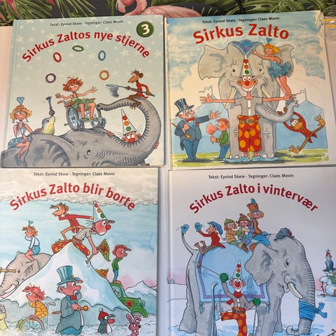 Selger unna endel flotte retro barnebøker. Her selges: Sirkus Zalto, Eivind Skeie, Trygg Trafikk / Idéhospitalet AS, Kastrup 2005. Svært pent og lite brukt. Selges kr. 90,-. Hentes Lillehammer. Kan også sendes mot at kjøper dekker porto.