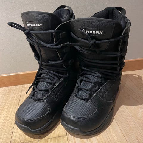 Firefly snowboardstøvler i svart farge, størrelse 28 EU (UK 9,5, US M 10,5). Støvlene har snøresystem og er designet for vintersportbruk.