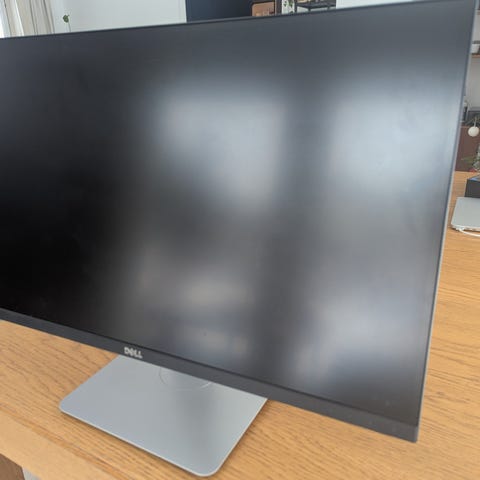 Selger en Dell UltraSharp P2715Q 27-tommers skjerm med 4K-oppløsning (3840x2160) og IPS-panel som gir skarpe detaljer, god fargegjengivelse og brede innsynsvinkler.